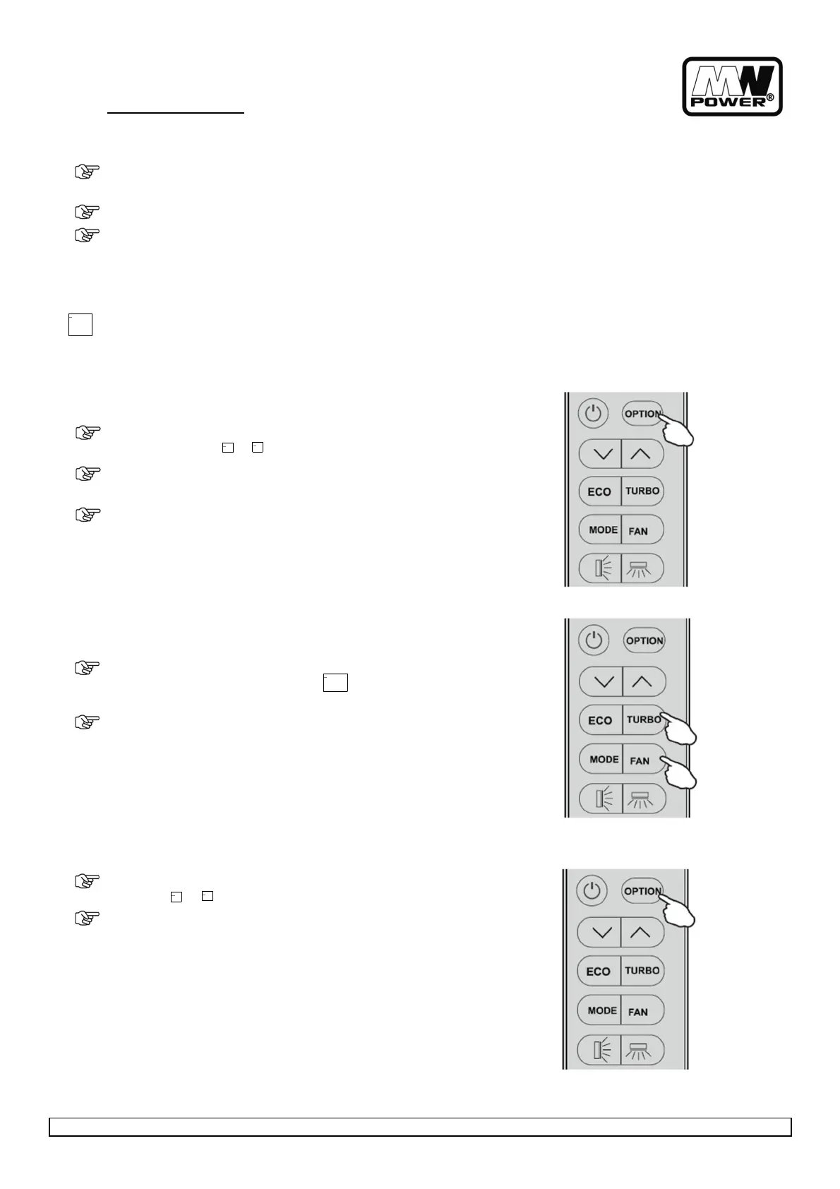 To activate turbo function, pressing the button TURBO or