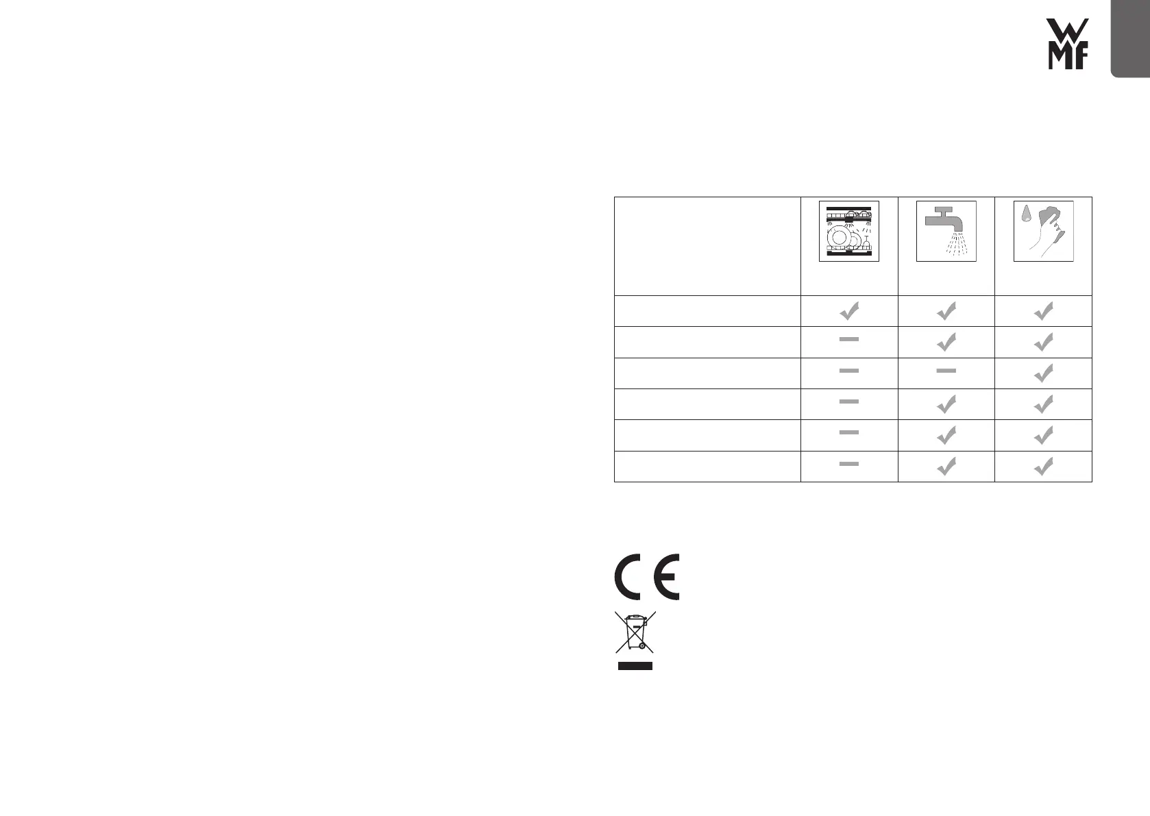 Blandarverktygen och stänkskyddet kan diskas av under rinnande vatten.