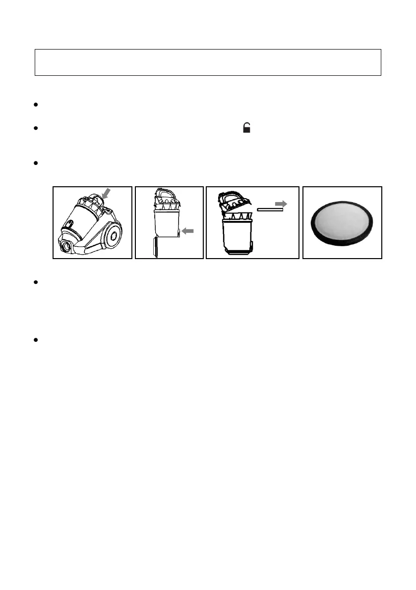Unplug the vacuum cleaner from the mains, then hold the tank by the