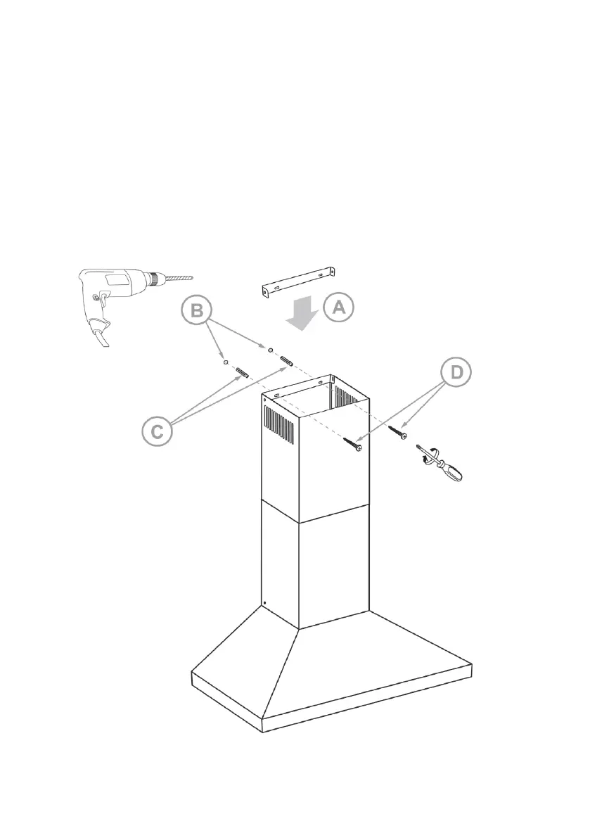 secção da chaminé, marque a sua posição na parede junto ao tecto,