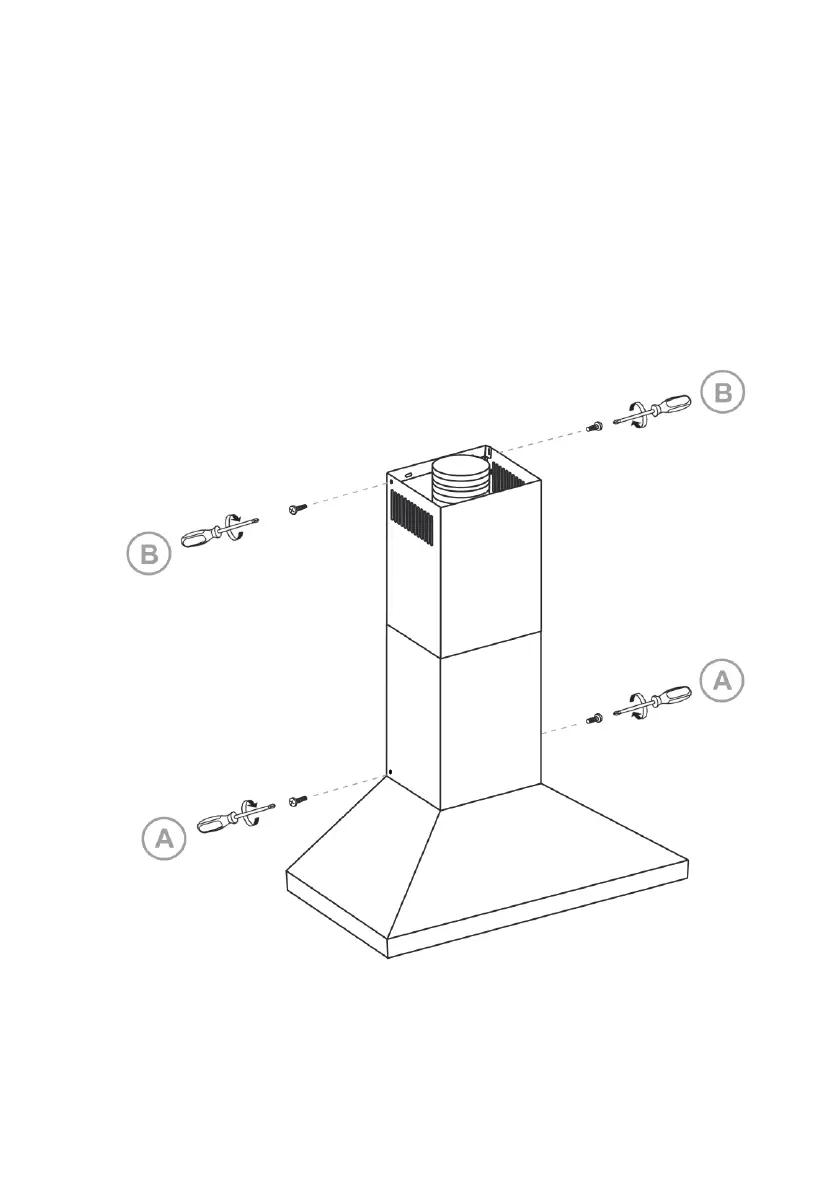 c) Attach the first section of the chimney and fix it to the hood using the