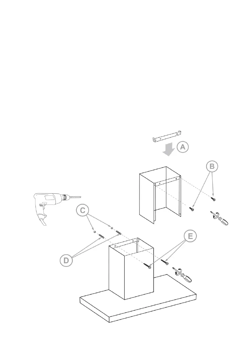 a) Fissare la staffa A utilizzando le viti filettate metriche B al primo tratto