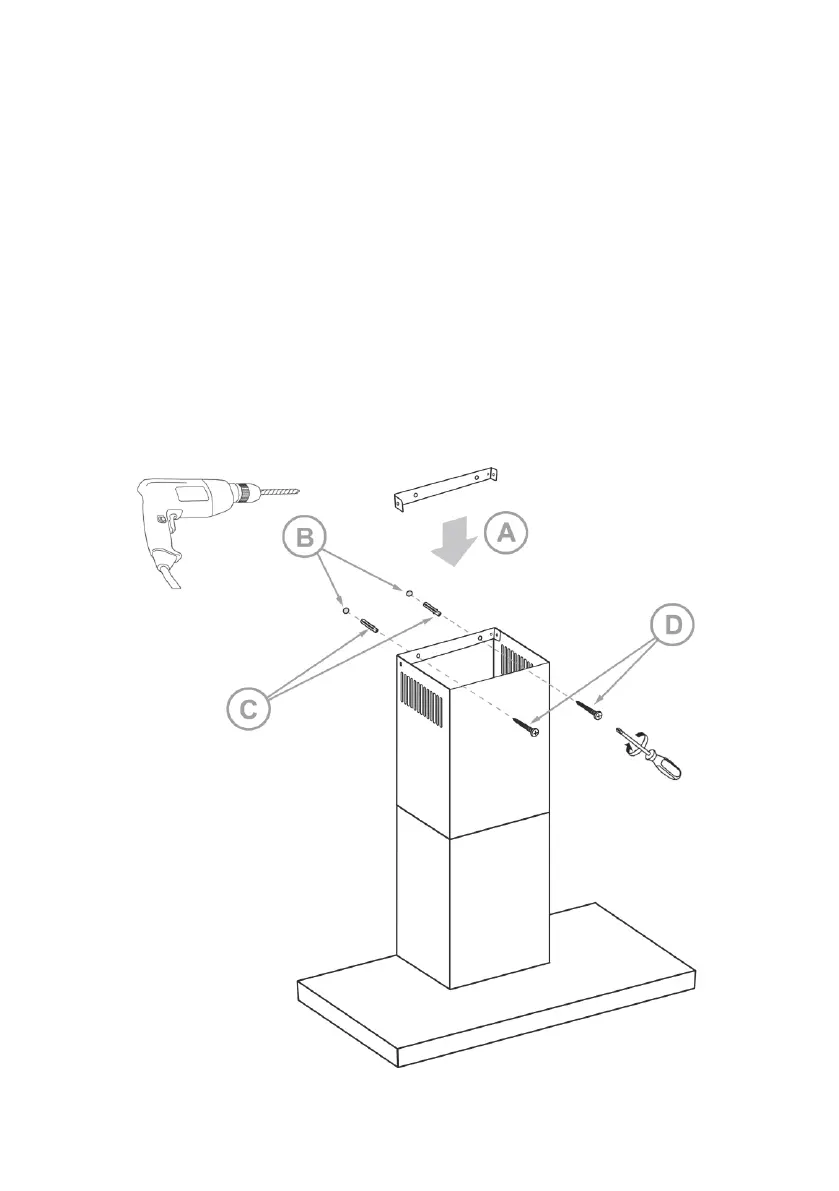b) Markieren sie die beiden löcher B der kaminhalterung.