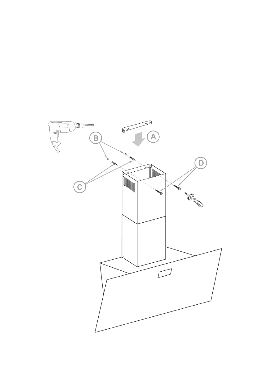 e) Fixez le support et fixez-le au mur à l'aide des vis fournies D.