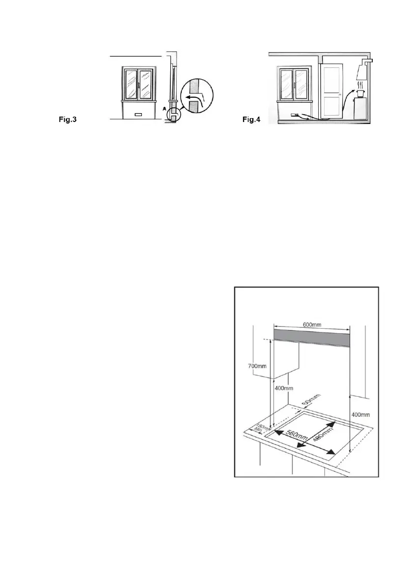 instalada acima do forno (deixando um pequeno espaço para facilitar a