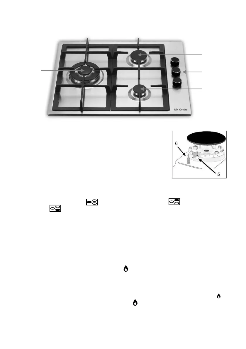 mínimo nivel de llama o hacia la posición ( ) máximo nivel de llama.