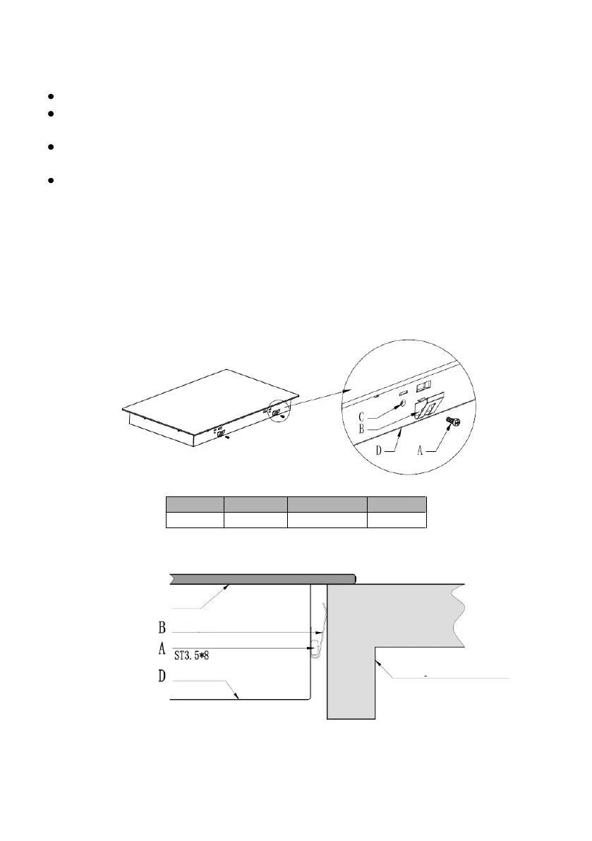 To fix the induction hob on the hob, you must first place the fixing brackets, use
