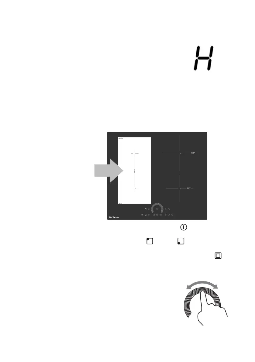 3. Toque no botão liga / desliga da zona de cozinhar flexível 7 ( ), o