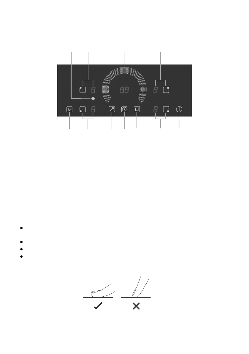 8. Indicatore flessibile della zona di cottura acceso