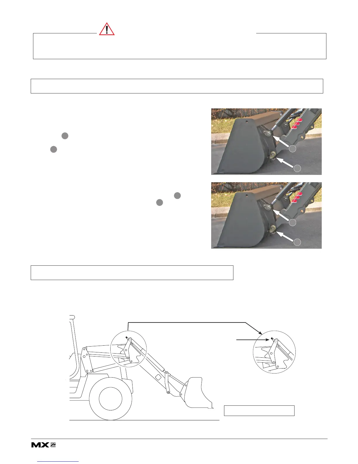 Press on the ground to check if implement is correctly locked on the loader. Use D.A. mode.