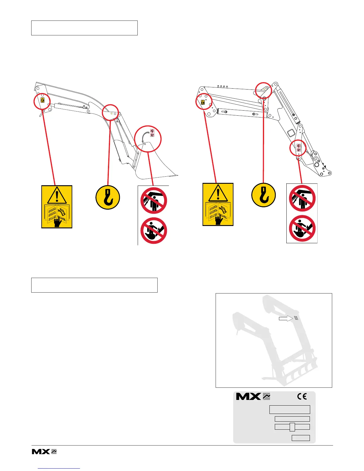 Security stickers are located on the loader. Keep them readable and clean, and change them if damaged.