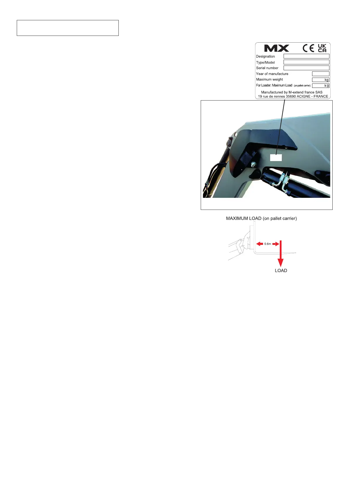 The serial number and loader model shown on this plate must