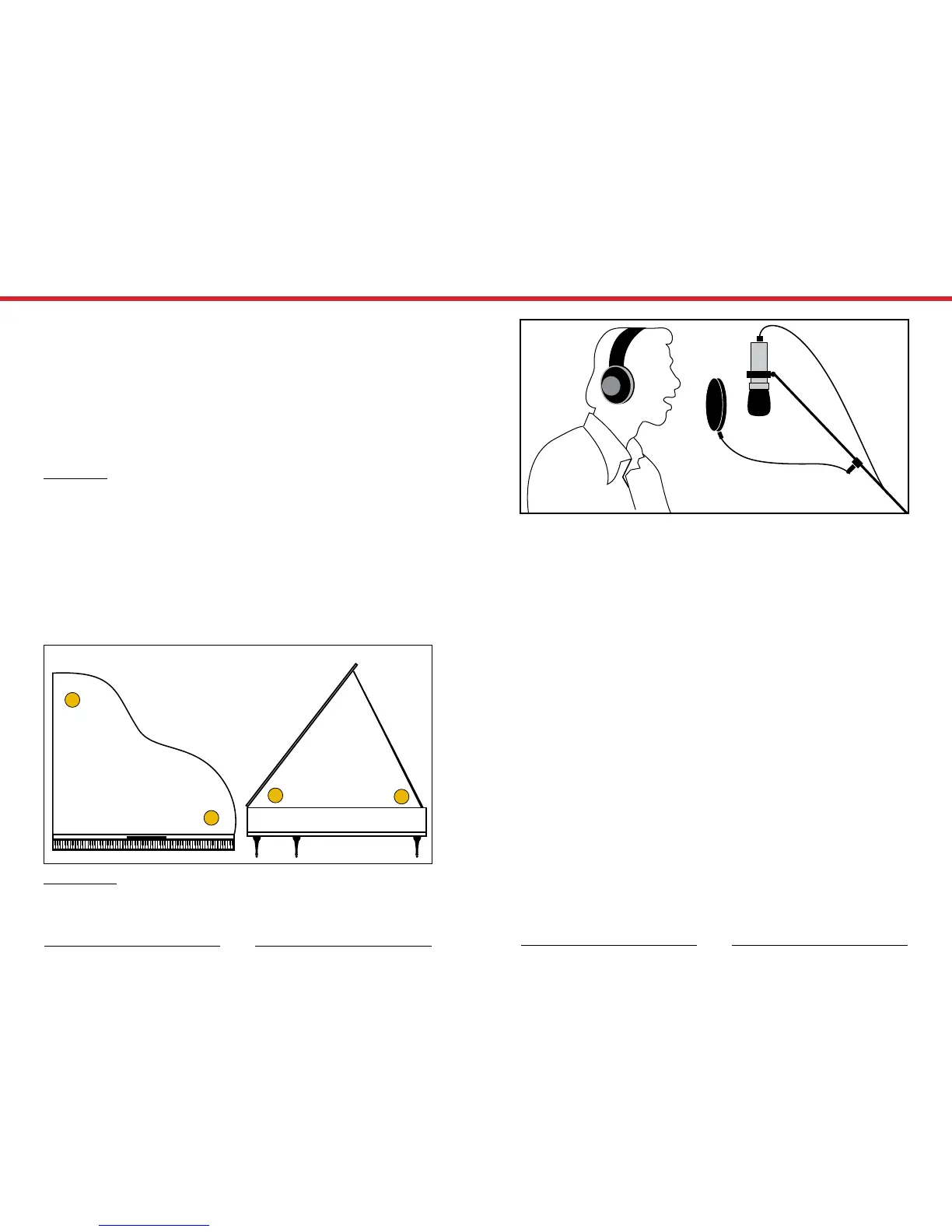 Grand Piano: For the upper strings, position the microphone approximately 8
