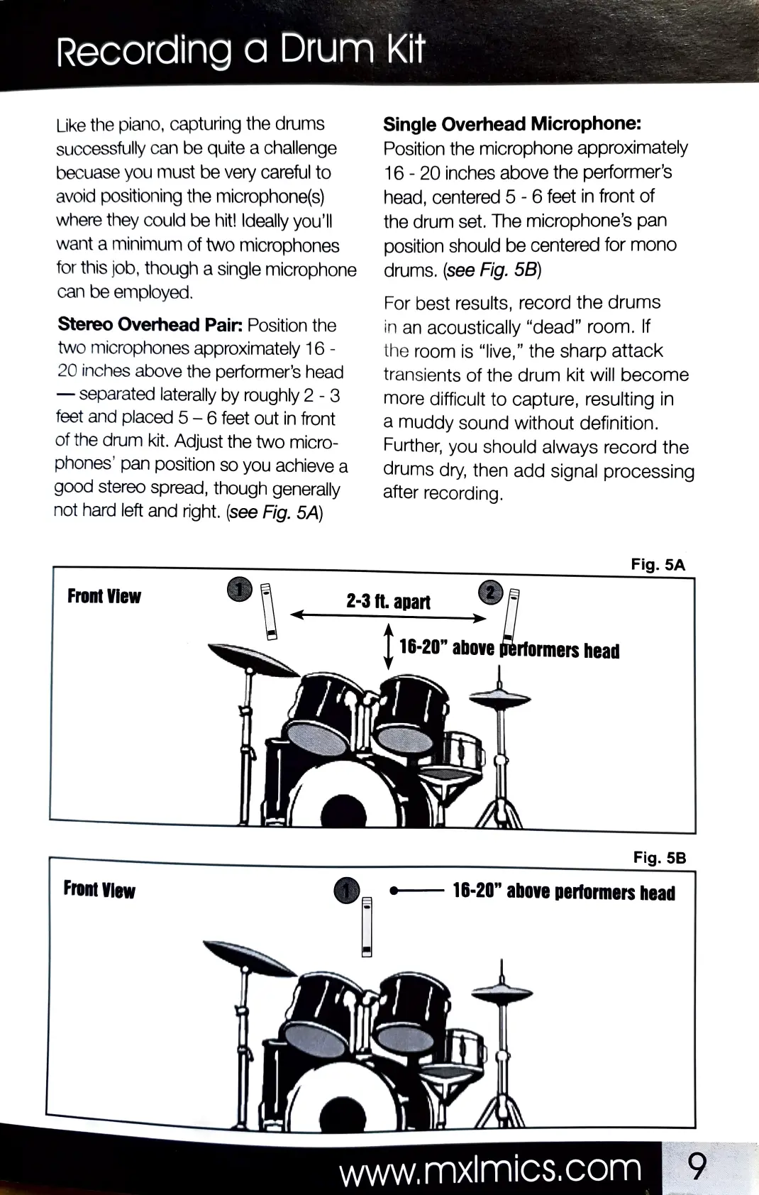MXL V67g - Recording a Drum Kit; Stereo Overhead Pair; Single Overhead Microphone