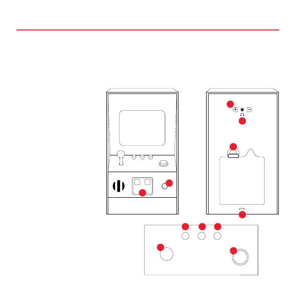 My Arcade SPACE INVADERS MICRO PLAYER - Device Components and Controls; Power, Game, and Player Buttons; Control Stick and Reset Button; Audio and Power Ports