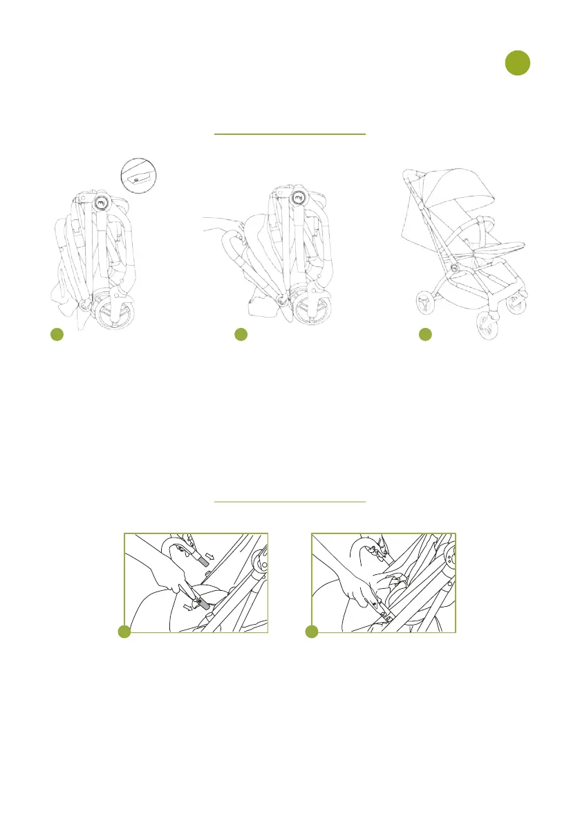 Drücke den Faltmechanismus-Knopf (Abb. 1) und ziehe den Buggy am Griff zum