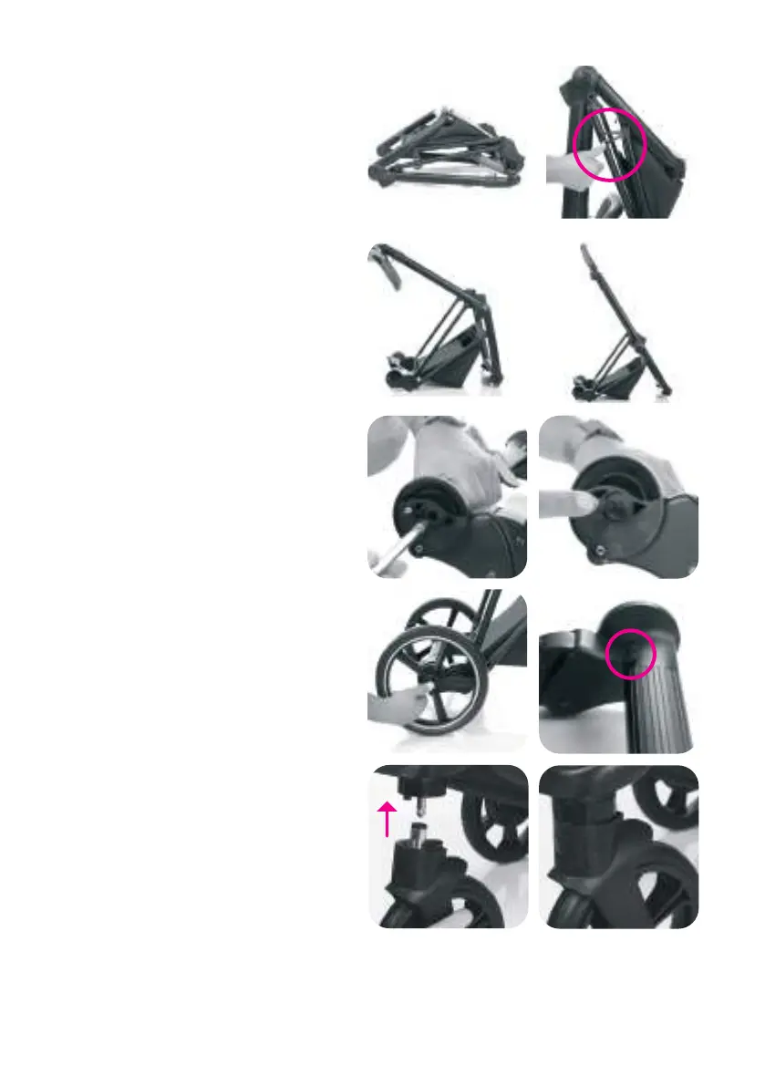 Um die Hinterräder am Kinderwagen zu montieren,