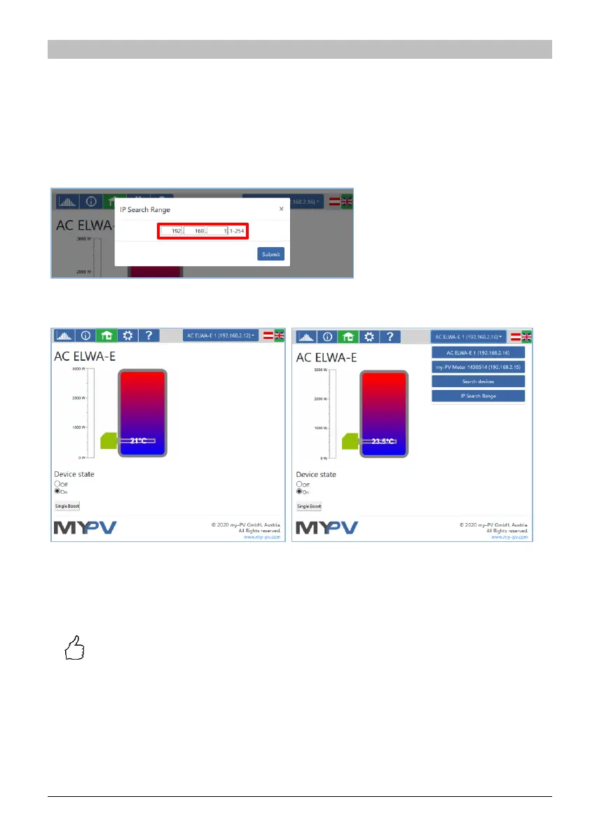 my-PV devices in the network. The button "Search Devices" scans the network for my-PV