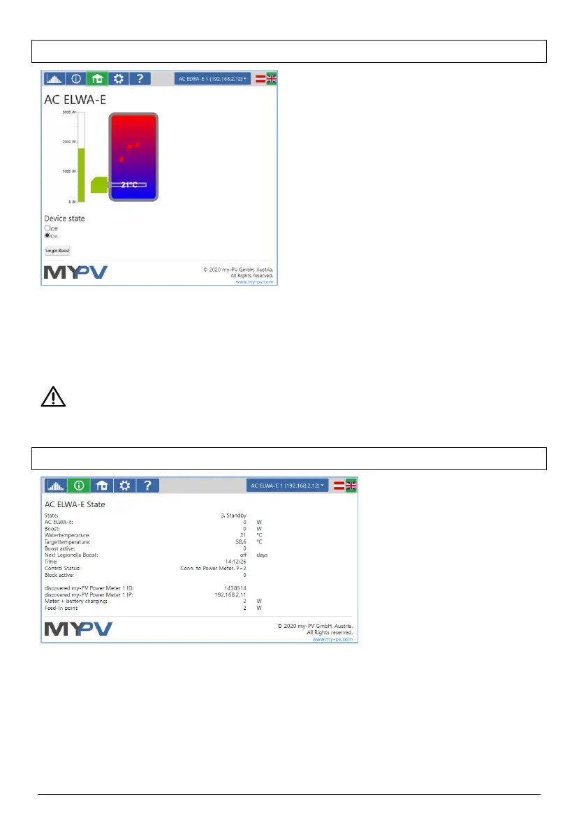 With device state "Off" the control of the AC ELWA-E can be switched off. The status page