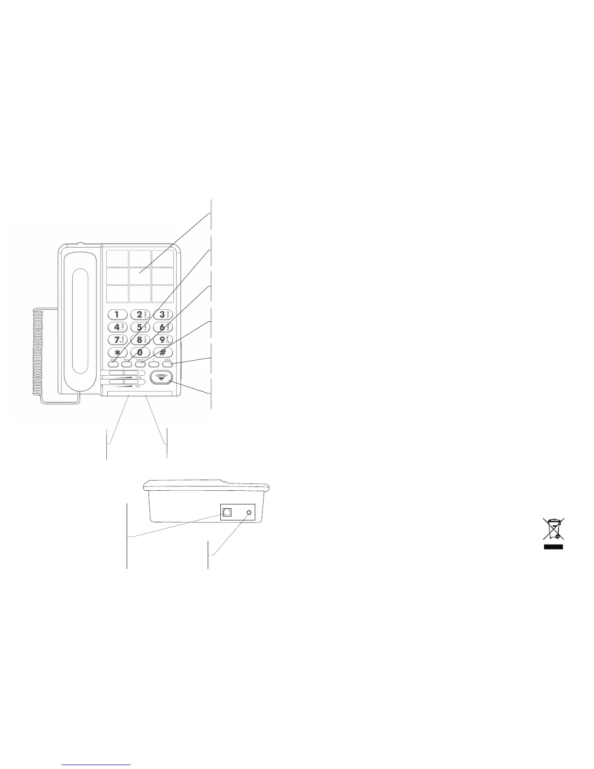 Der Schalter R zur Auswahl von "100MS" oder "300MS" befindet sich auf der rechten Seite des Telefons.