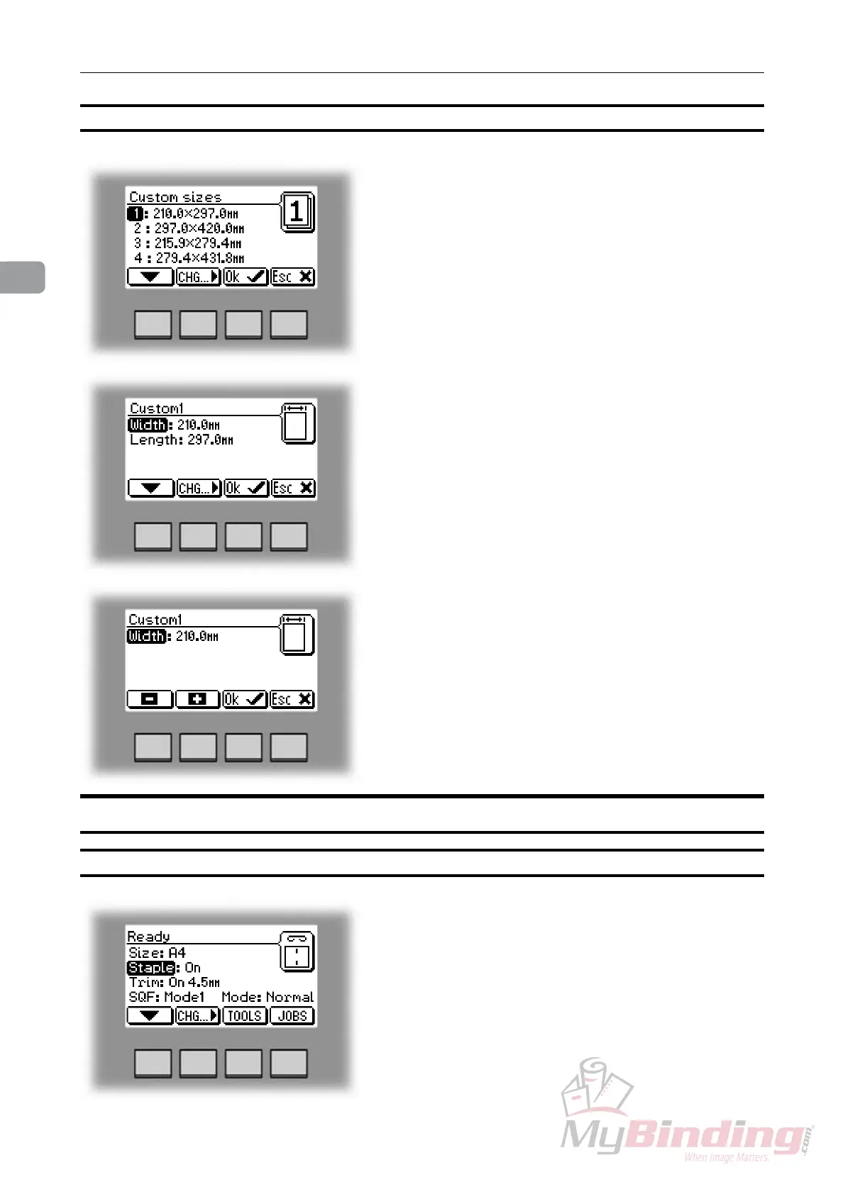 Four different custom paper sizes can be stored.
