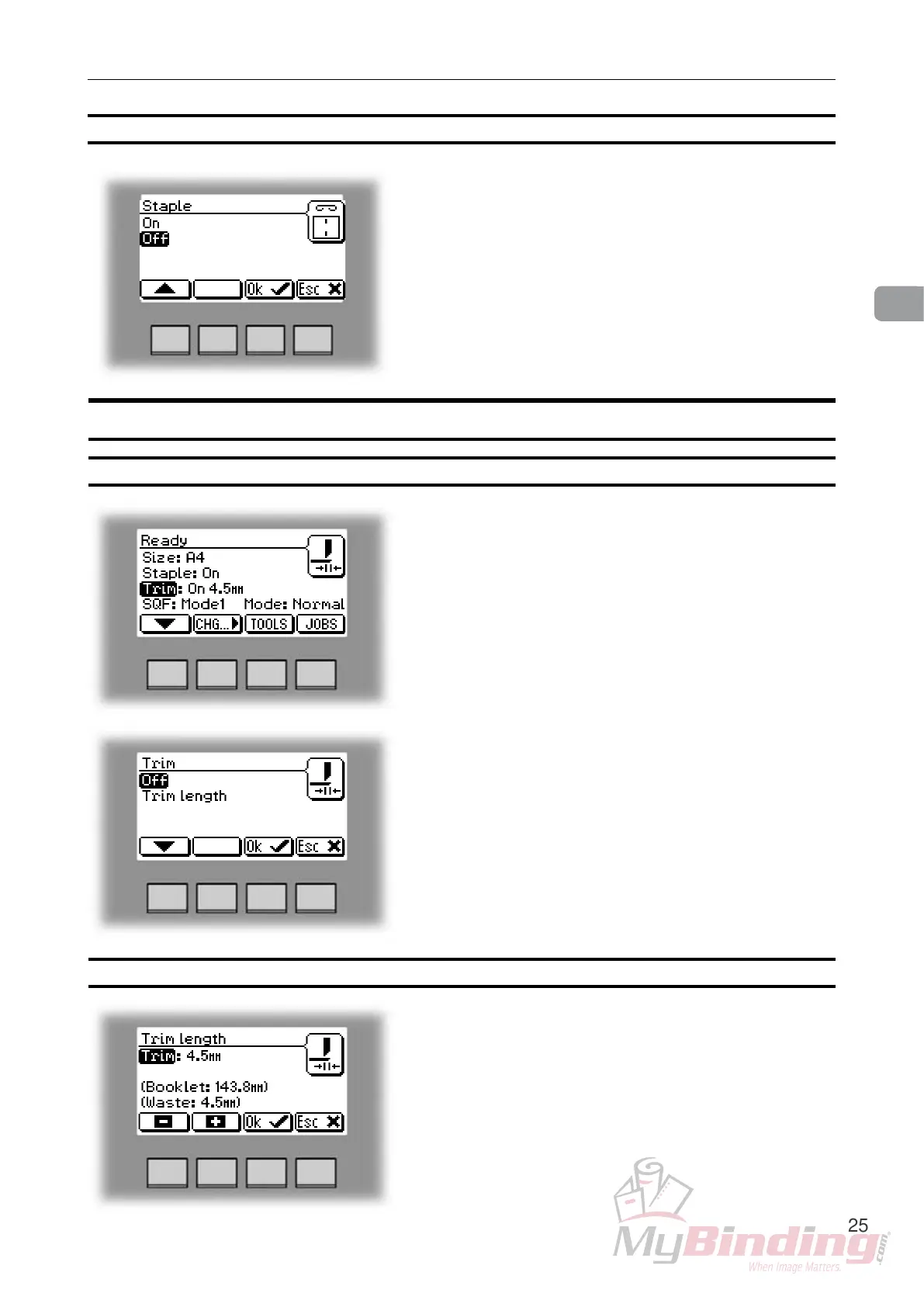 Selecting stapling On or Off, continues