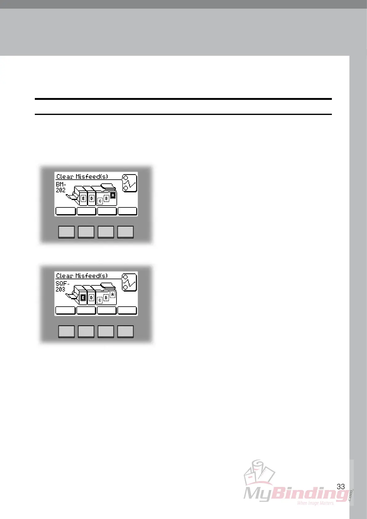 If a misfeed condition should occur, it is indicated on the Booklet Maker display. The message