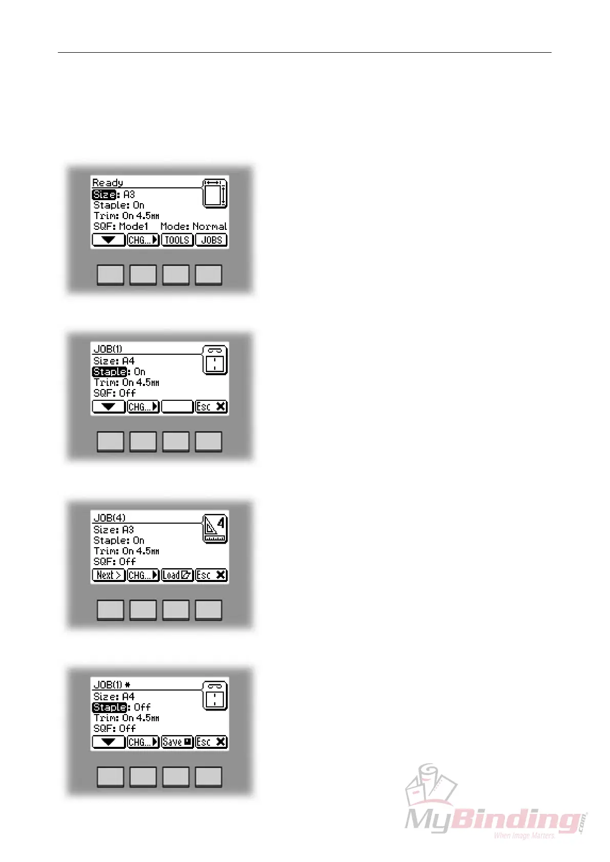 the current settings for job No 1. The asterisk on the