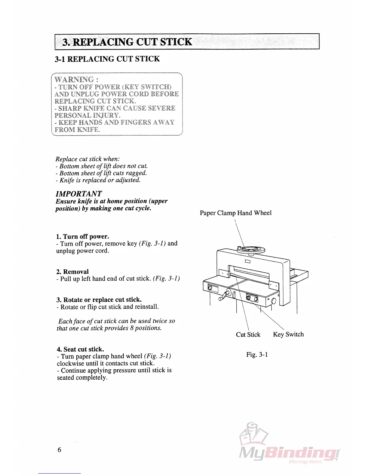 MyBinding Standard PC II- - Replacing Cut Stick; Procedure for Replacing Cut Stick