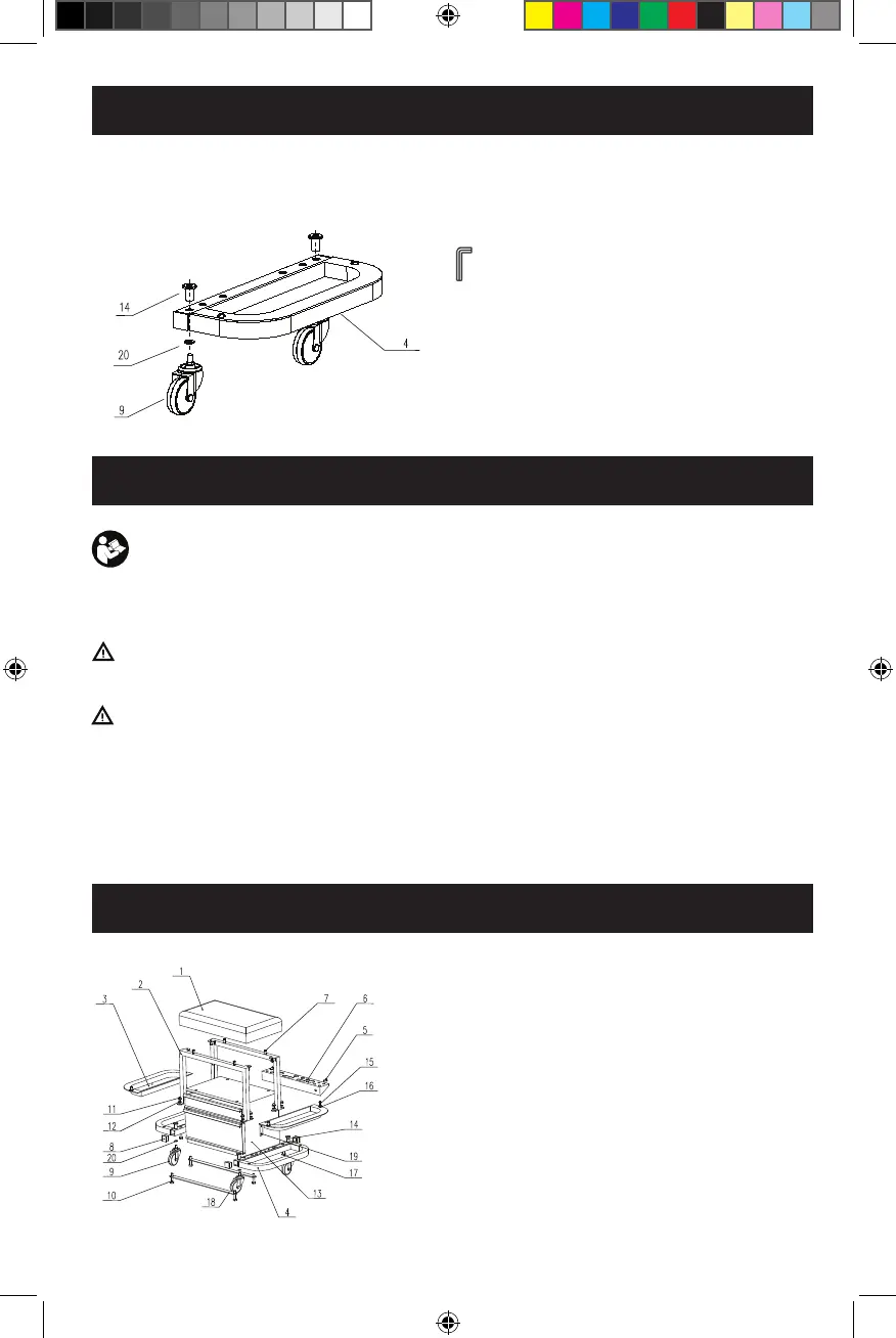 는 구멍(4)을 통해 바퀴(9) 4개와 워셔(20)를 조립하십