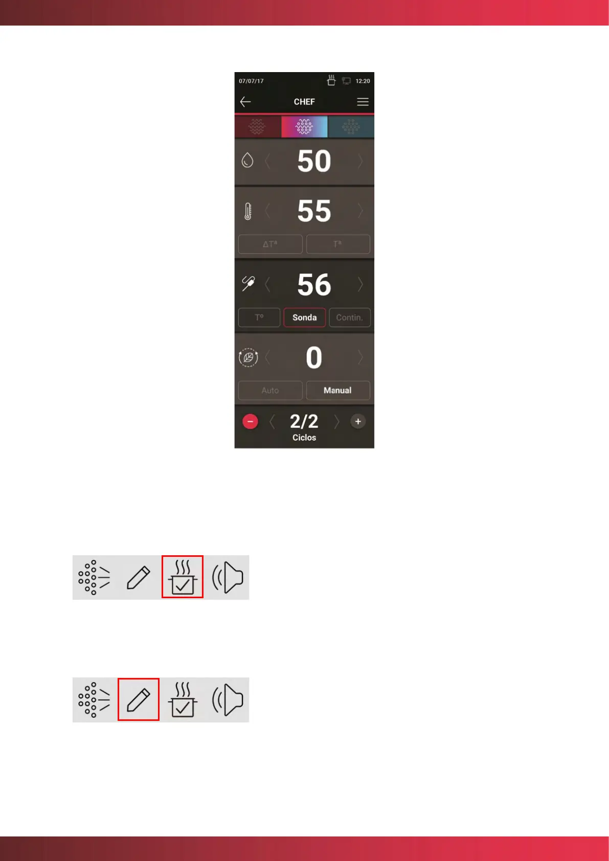 control the temperature of the probe through the "Cooking Check" option:
