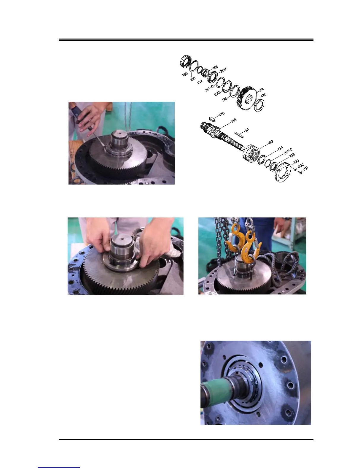 Screw two eyebolts into threaded holes on the drive gear [174] as sown in the above picture to the