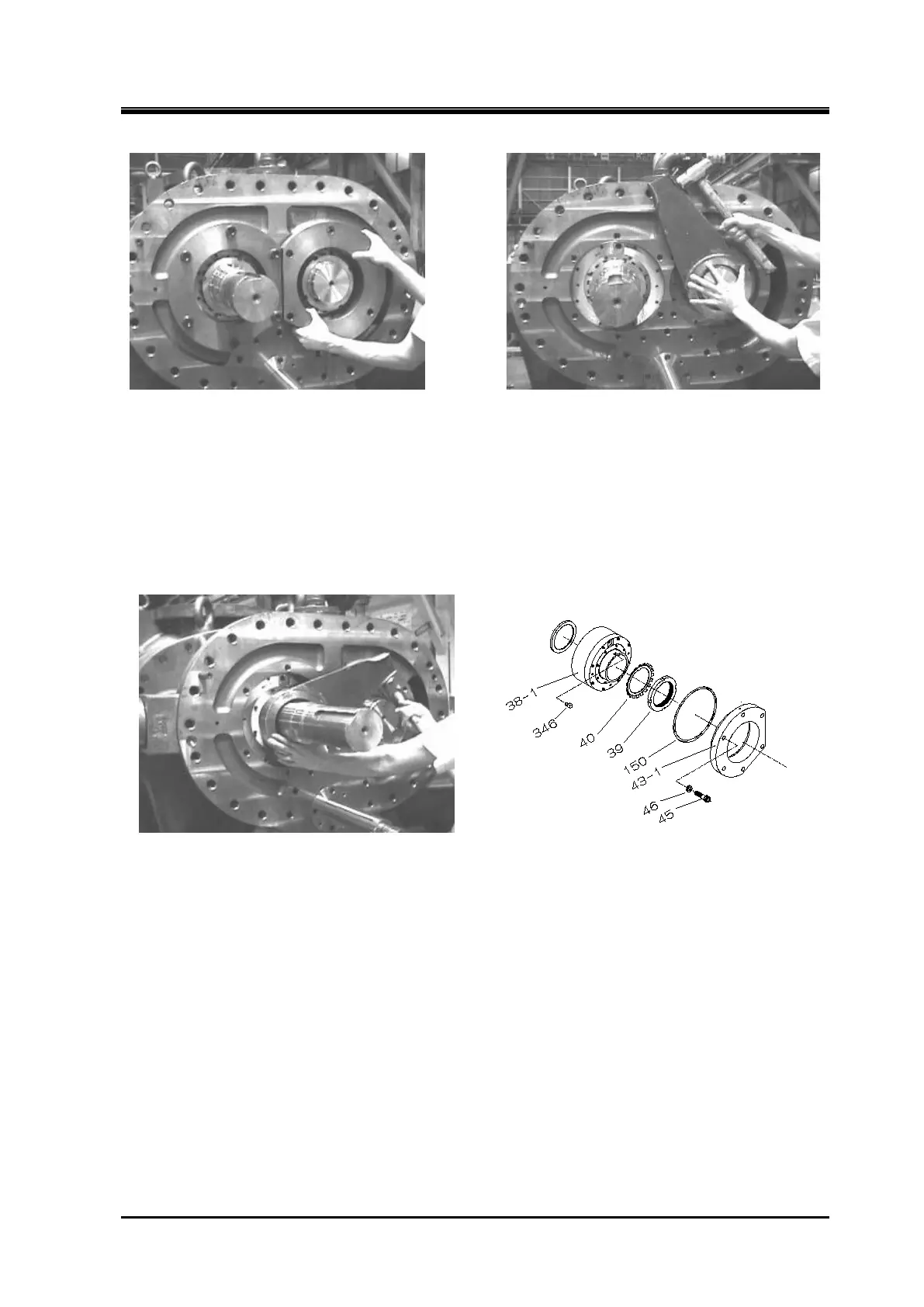 c) Insert two eye bolts into the bolt holes on the tilting pad thrust bearings and pull out the tilting