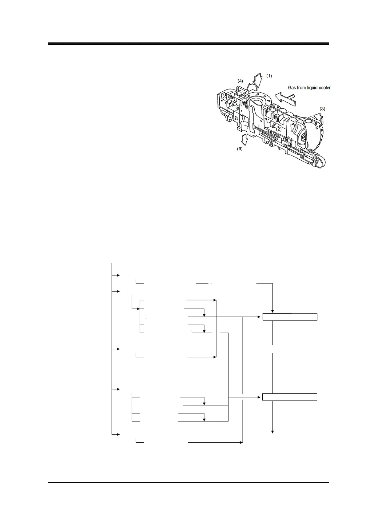 As shown in Figure 2-16, lubricant is split into five flows. After completing each role, the oil is mixed with
