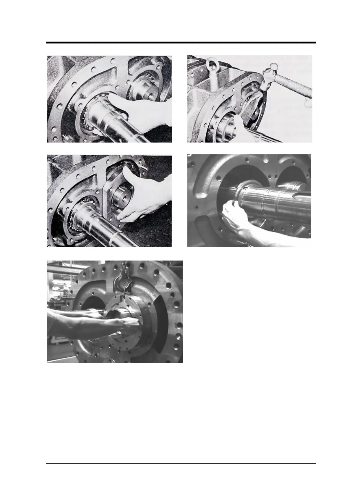 f) With the inner ring of the thrust bearing on the shaft fixed, push the rotor toward the discharge