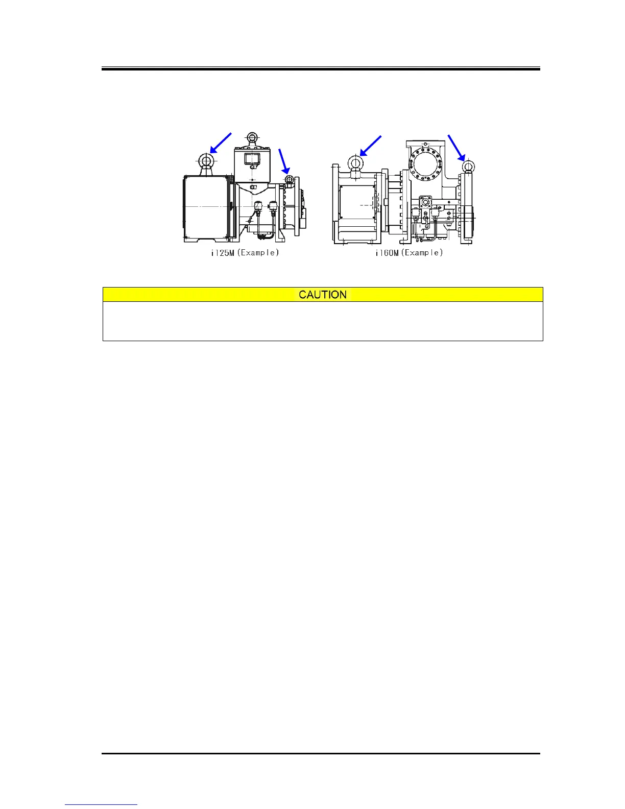 6. Before lifting, check that the hook is located above the gravity center of the compressor.
