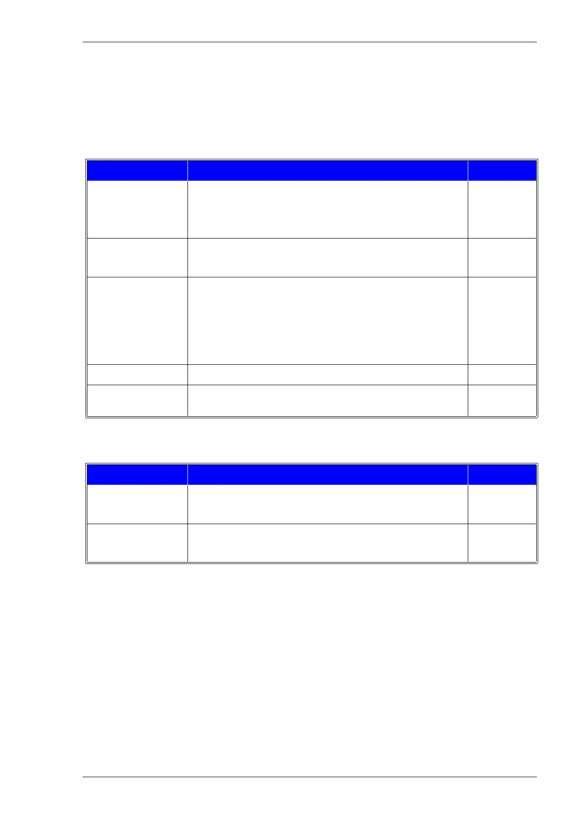 This section shows the previous described maintenance as tables that can be