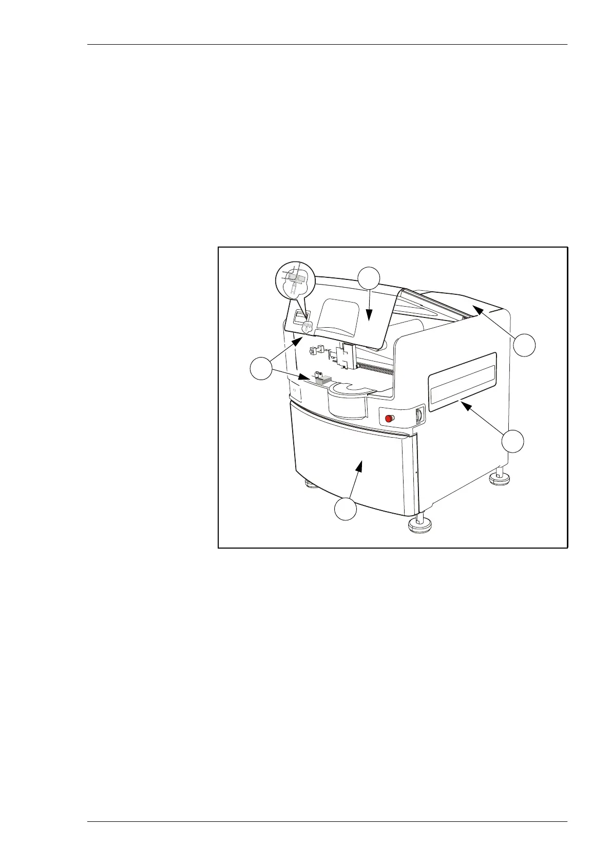 The following safety hoods and devices are found on the machine: