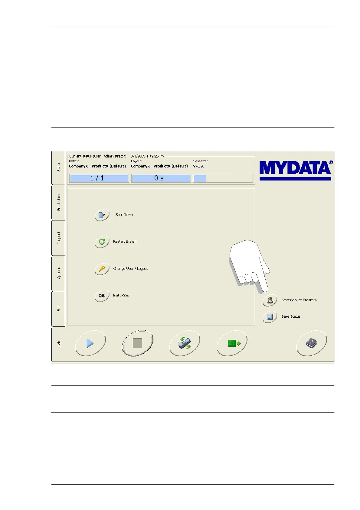 The service system is started from the Exit window.