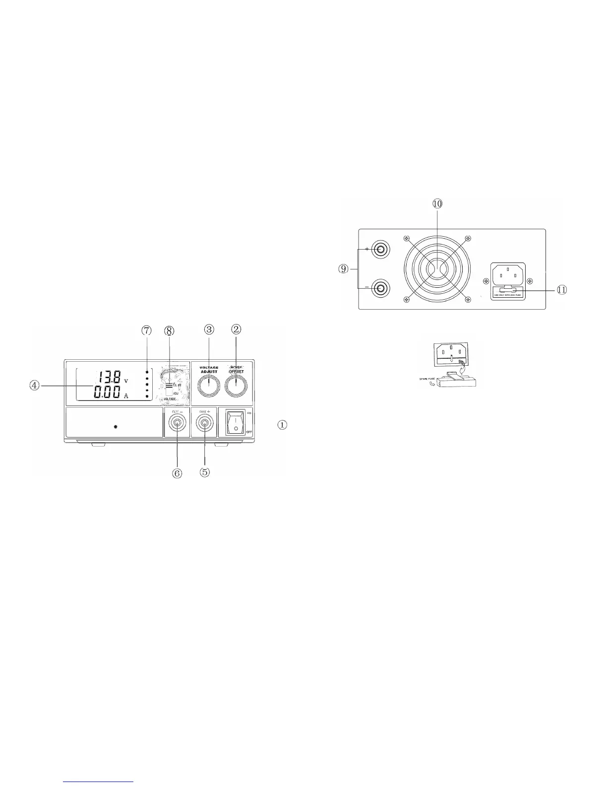 2. output voltage: 13.8VDC Adjusts voltage between 9.0 and 15.0