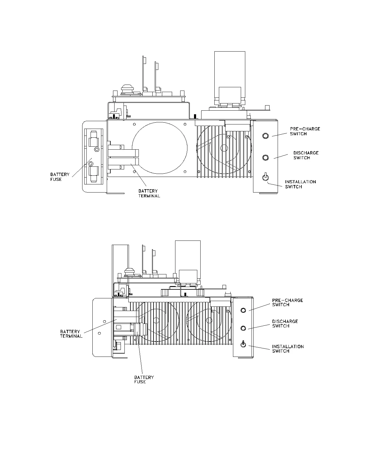 Figure 7.3 Battery Fuse, DC Pre-charge Switch & Installation Switch (10 kW – 16.7 kW)