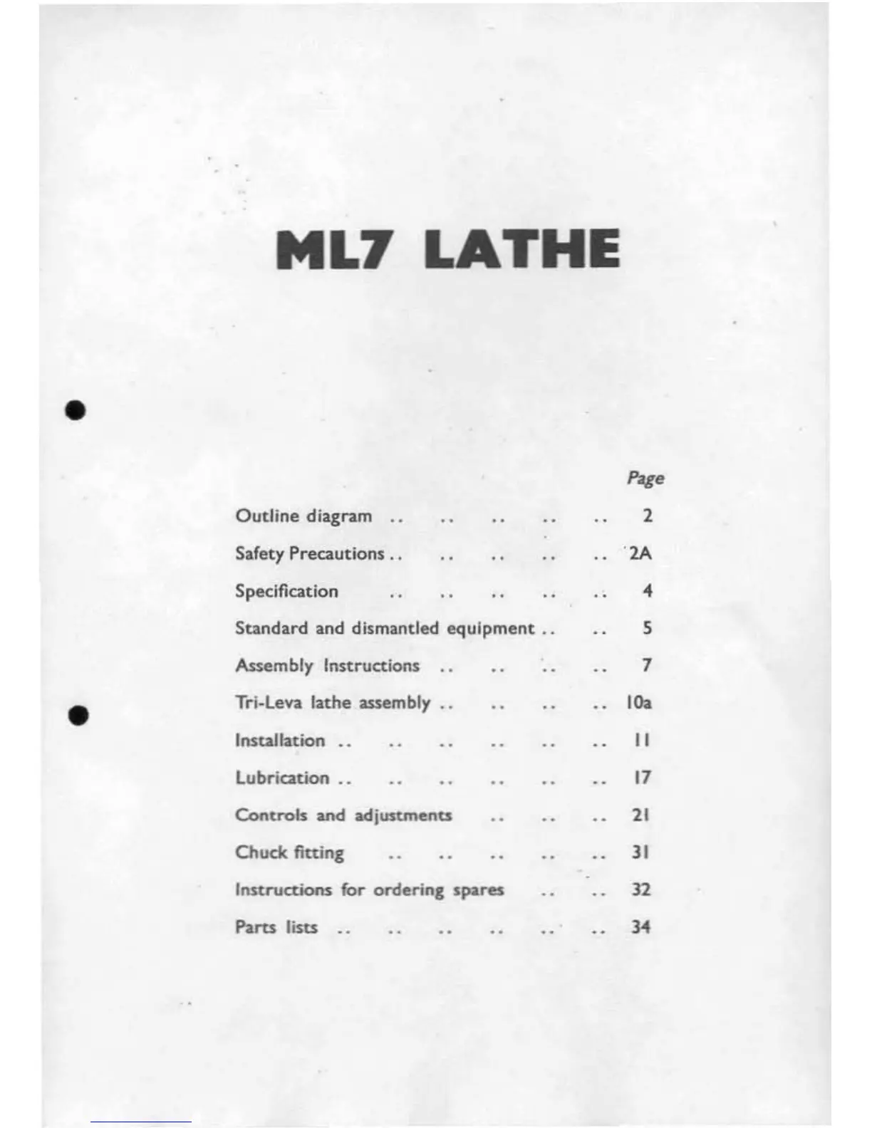 Other manuals for Myford ML7