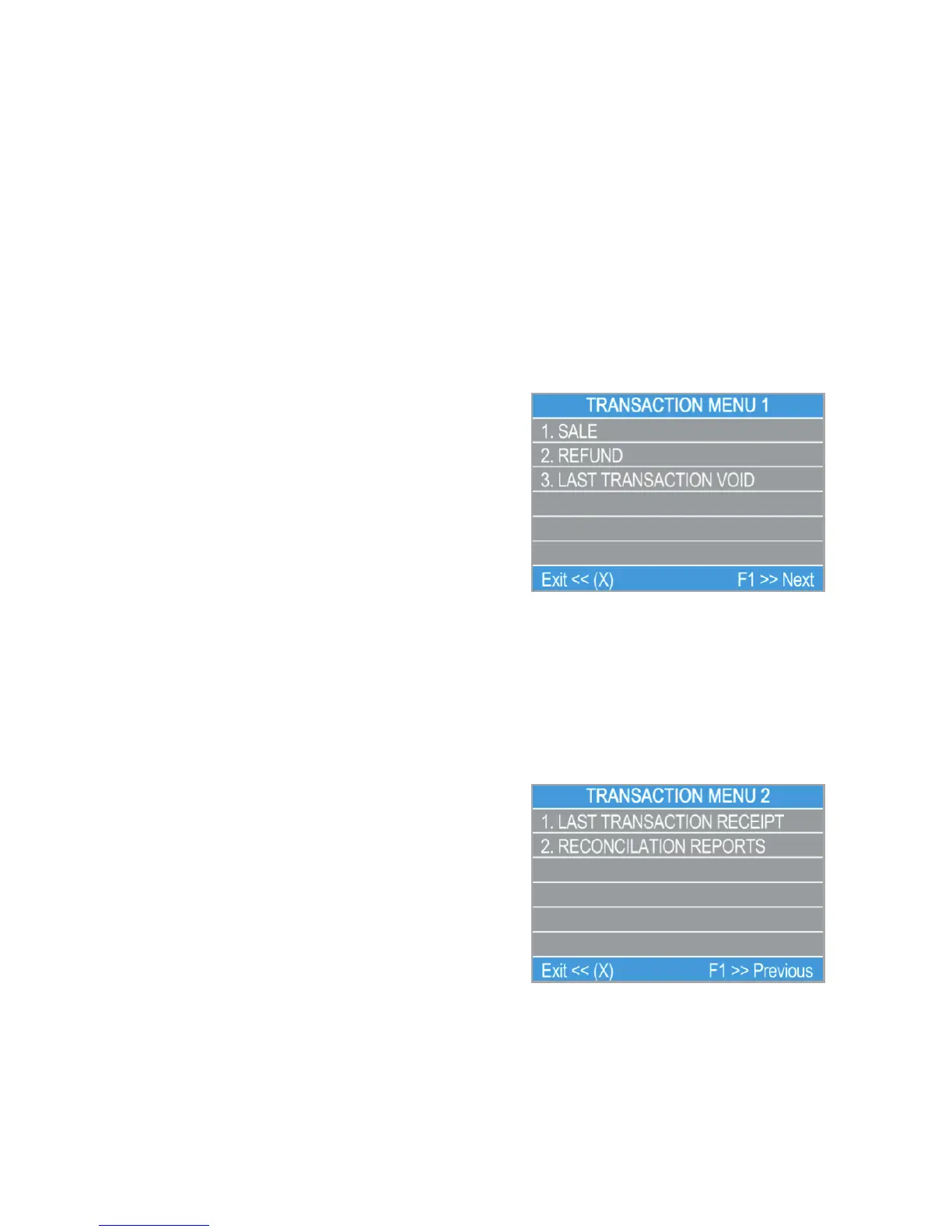 F1 – TRANSACTION menu