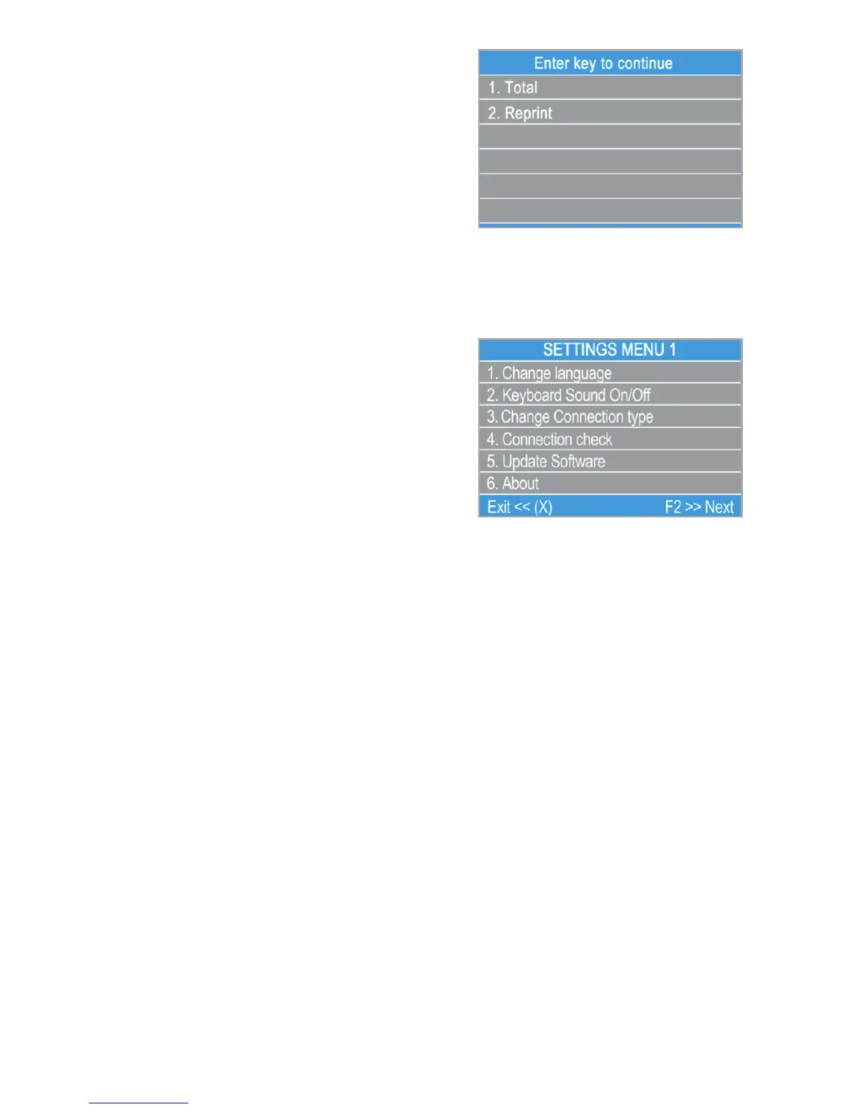 SETTINGS MENU1 shows the list of