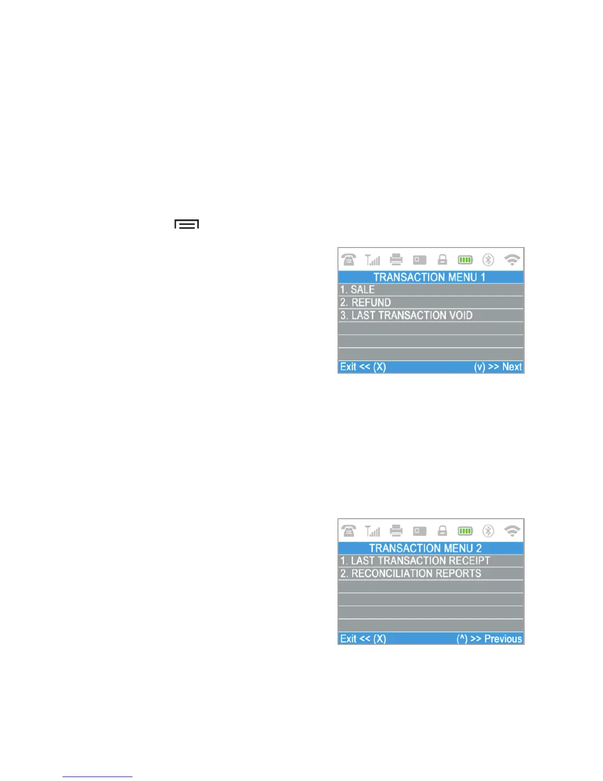 TRANSACTION menu