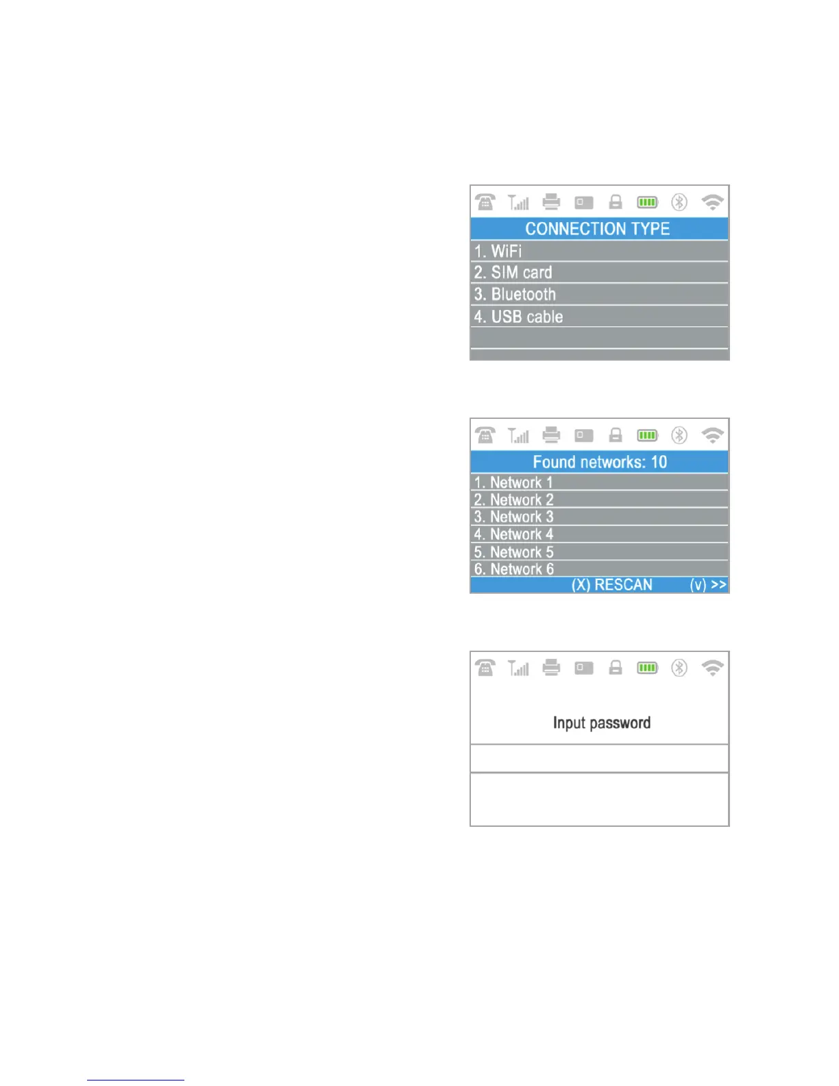 Password screen, where you can enter the