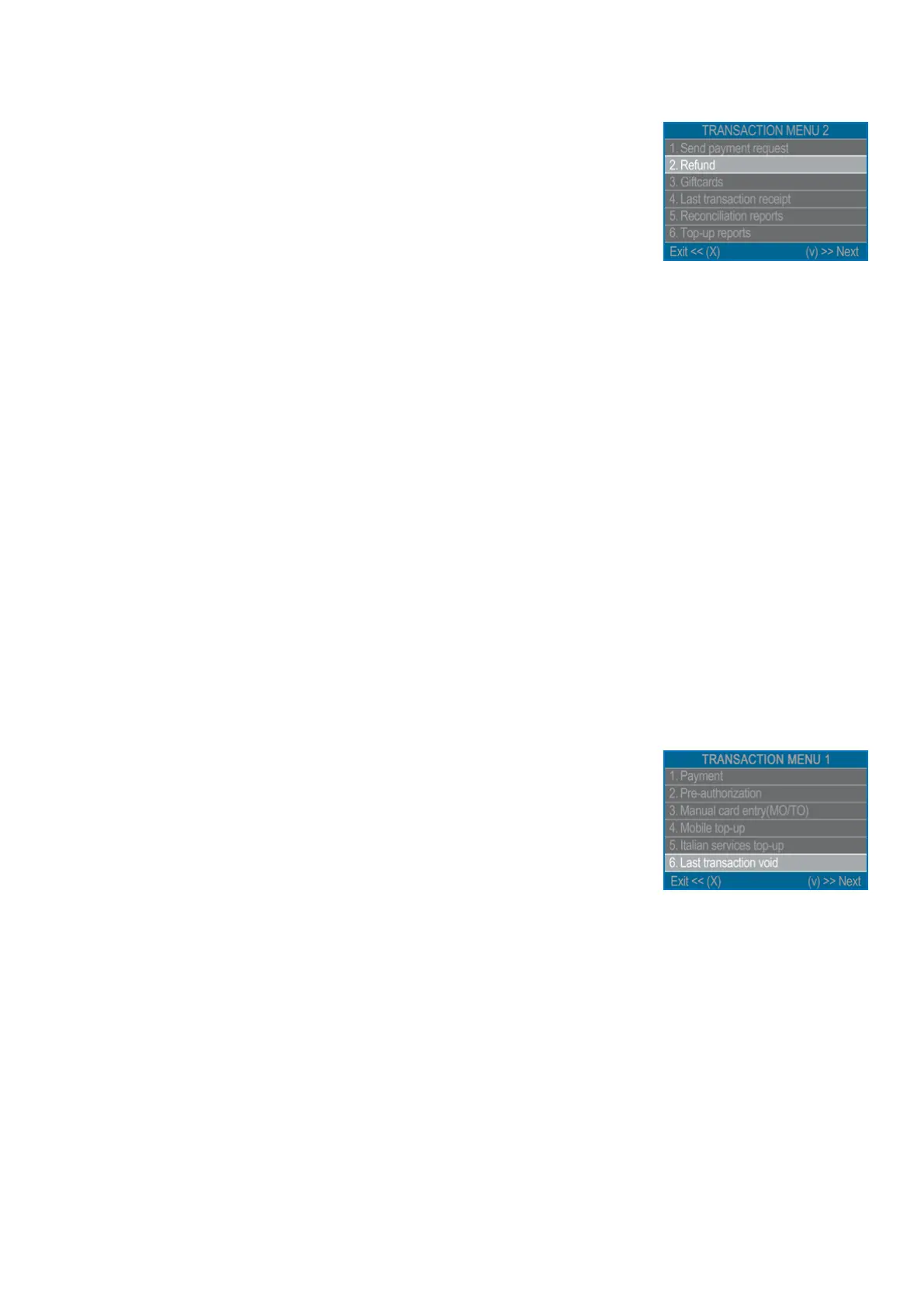 Transacon type menu. Go to Transacon menu 2 and select REFUND by pressing