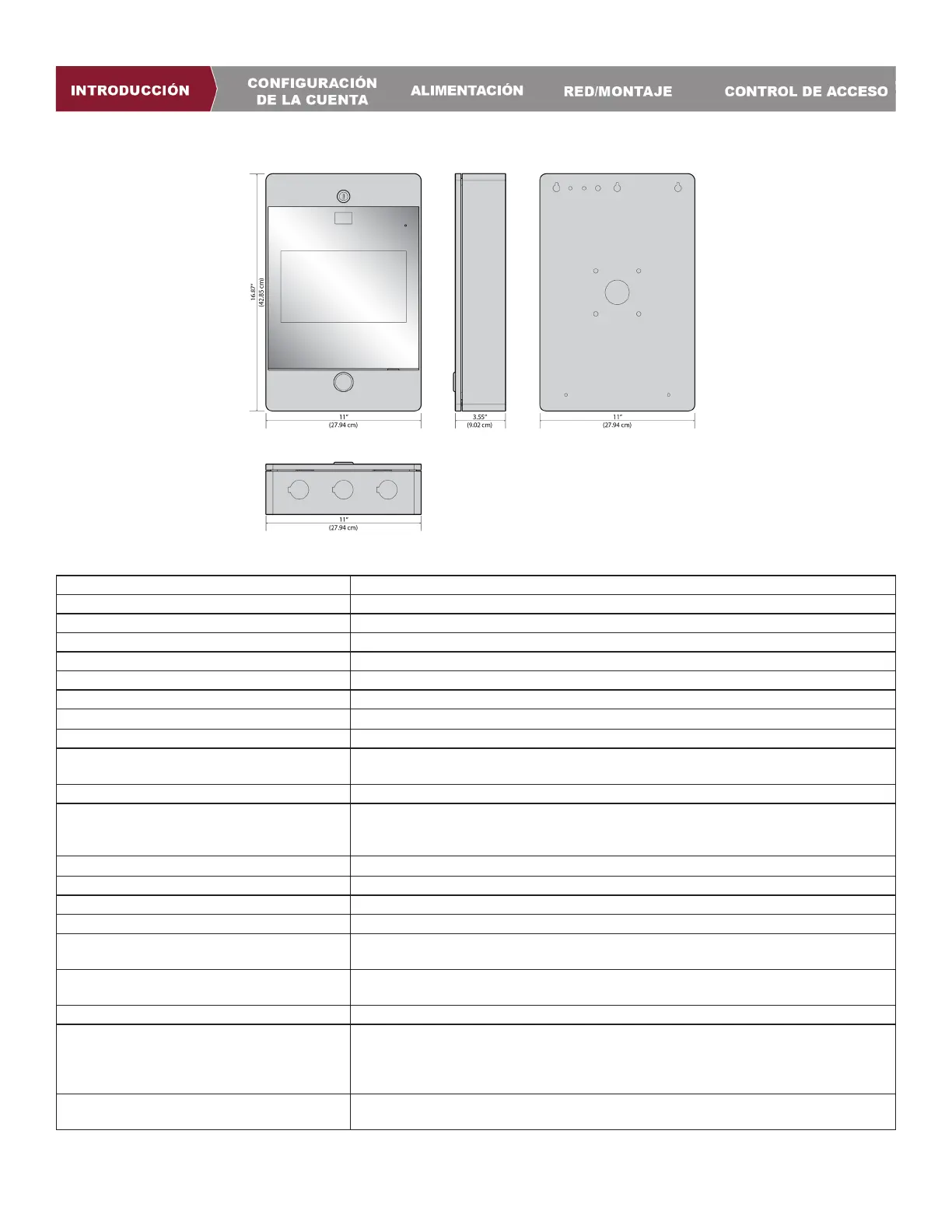 instalación, y ASCII (para teclados numéricos). Salida de alimentación de 12VCC, 250mA (por entrada)
