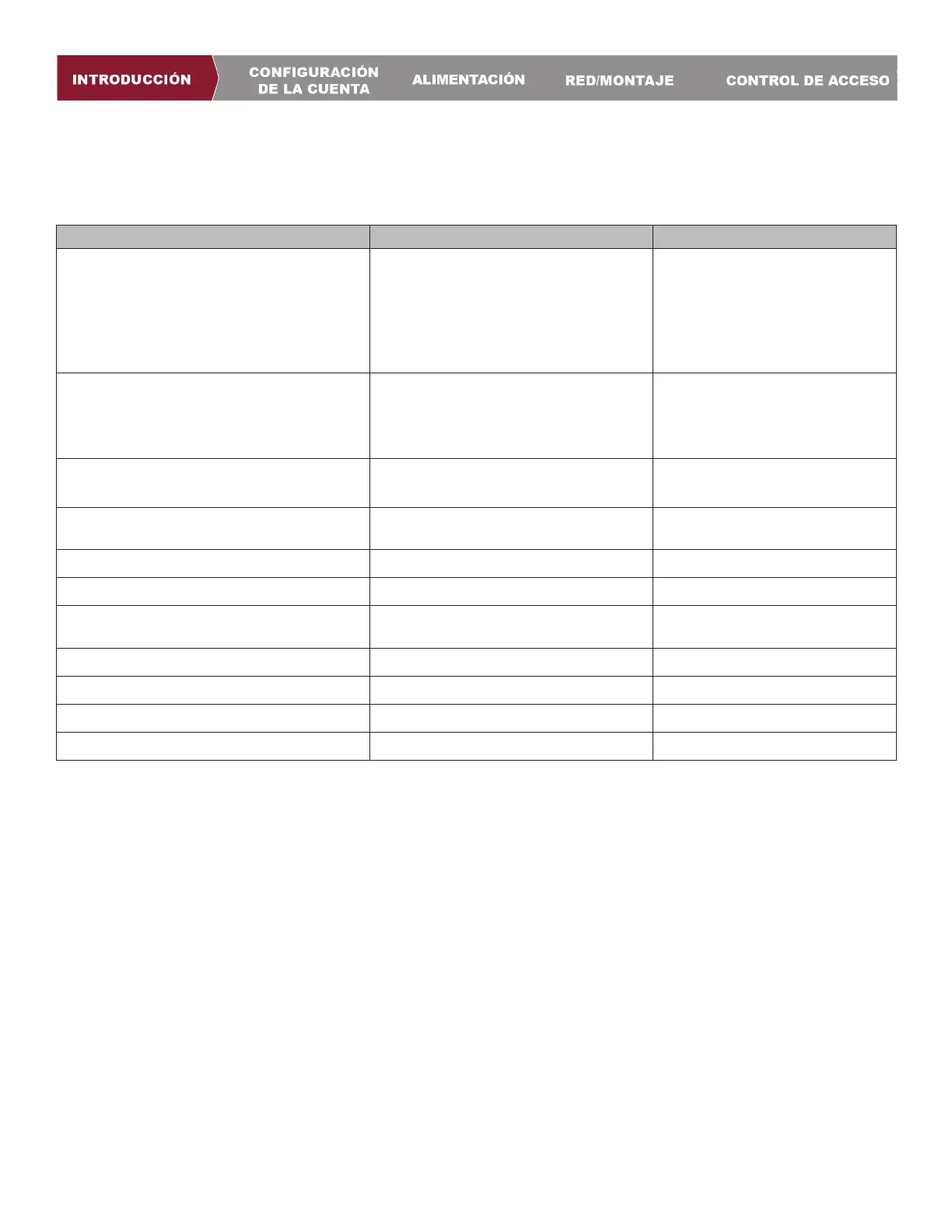 Utilice esta tabla para jalar los cables durante la preparación de la instalación. Verifique las normas locales y nacionales de construcción