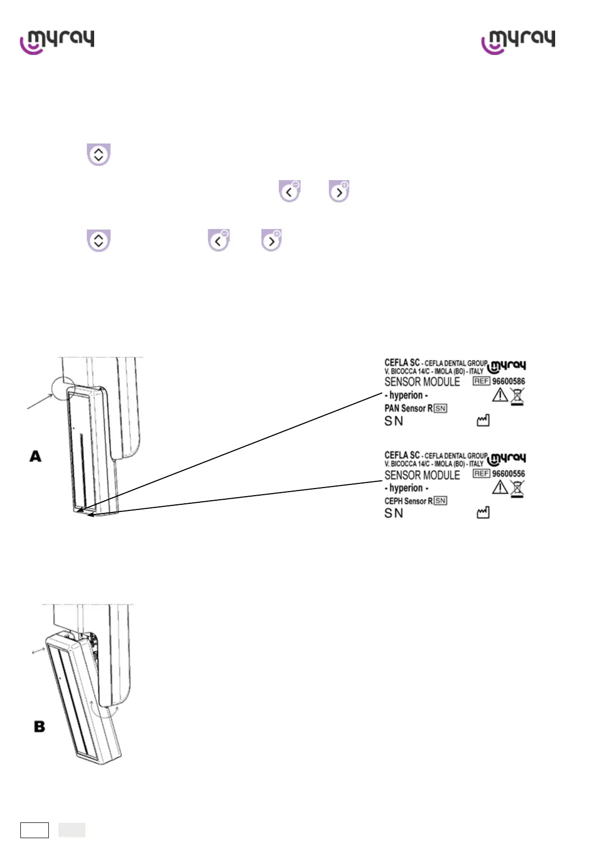 Den Sensor mit beiden Händen greifen und eine Drehbewegung ausüben (B), um ihn zu befreien oder ihn einzusetzen.